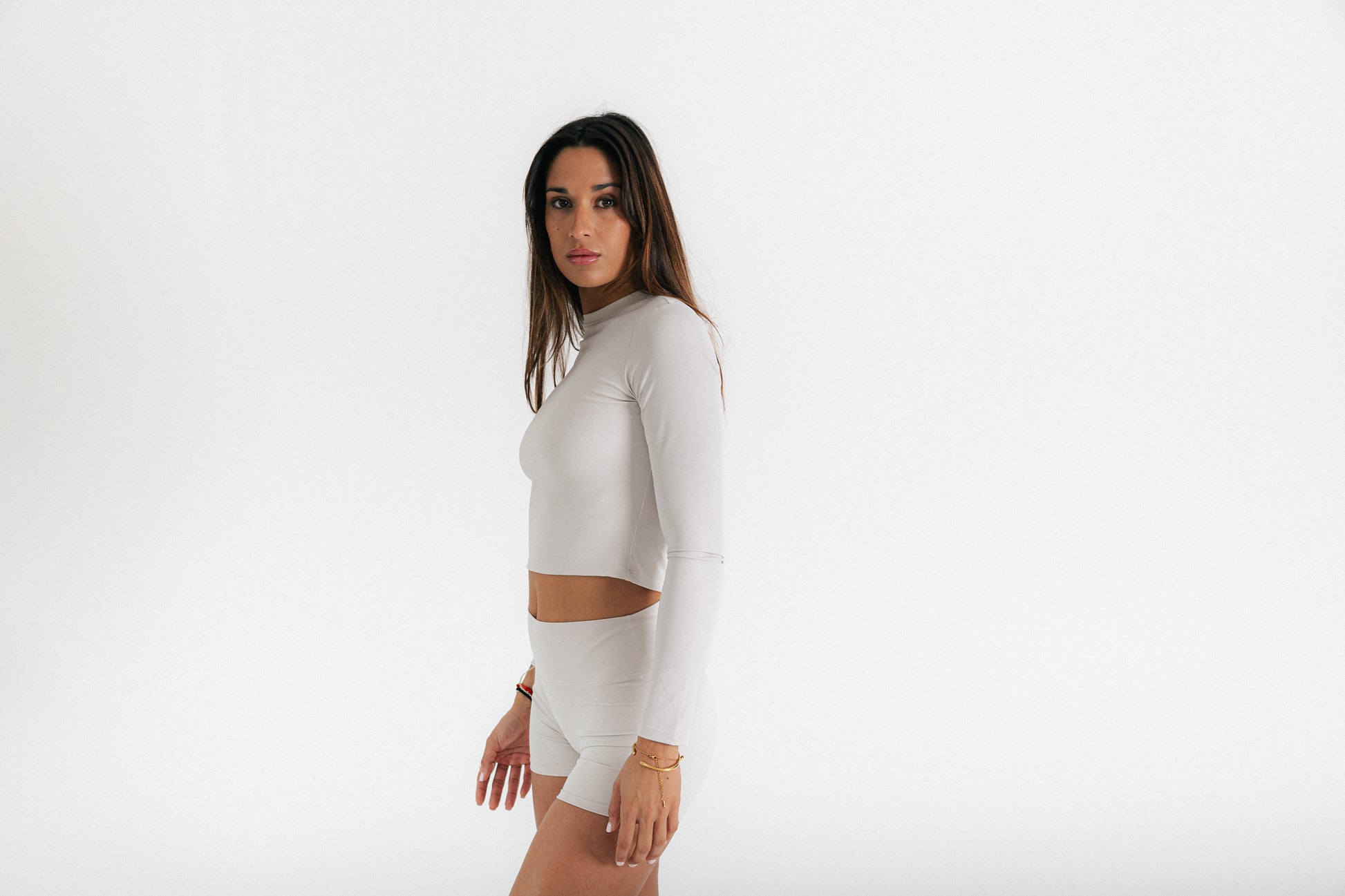 The Serenity Long Sleeve Top is supportive and lightweight, perfect for those active days. It is a little shorter, leaving the belly part exposed.